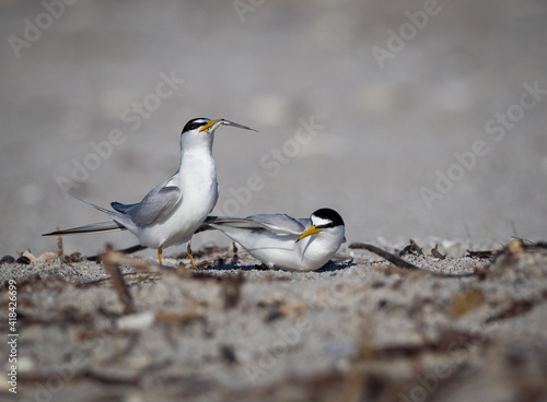 Pair of least terns performing mating behavior of the giving of food..
