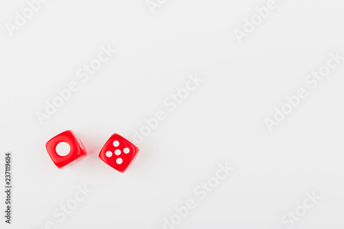 Pair of red dice on the light background