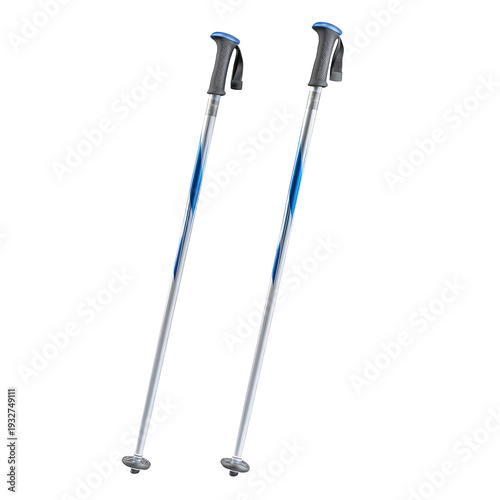 Pair of Silver and Blue Ski Poles on a Transparent Background. Isolated Clipart High Resolution Png Digital Design Asset
