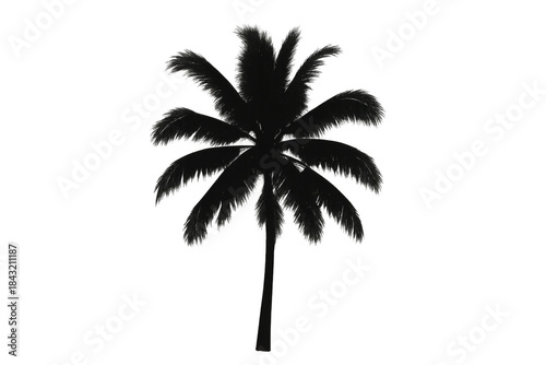 Palm tree silhouette on transparent background representing tropical vacation, summer, and beach paradise designs