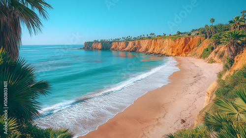 Palm trees and driftwood scattered along the edge of a beach, waves rolling in: Pieces of driftwood lie along the shore, with tall palms standing nearby. The waves roll onto the sa
