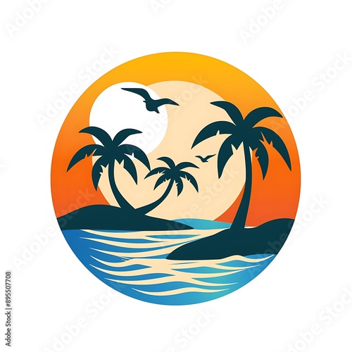 Palm Trees at Sunset on Tropical Beach
