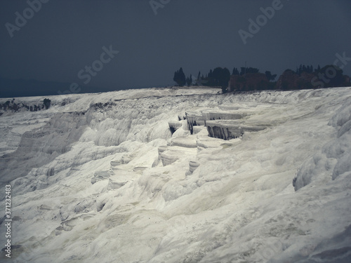 Pamukkale, natural pool with blue water, Turkey tourist attraction