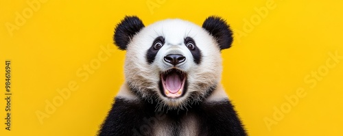 Panda's Big Surprise - Close-up Portrait on Yellow Background, Panda, Animal, Funny