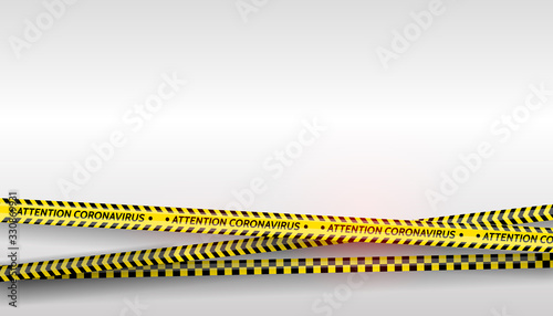 Pandemic stop. Coronavirus covid-19 2019-nCoV. Black and yellow stripes set. Warning tapes. Danger. Quarantine biohazard sign. Caution ,Warning or stop corona virus concept. Vector
