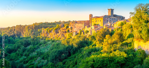Panorama of a medieval village at sunset in Tuscany, Italy. Europe