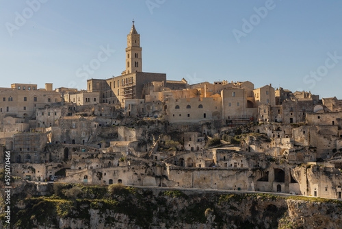 Panorama of Matera, a UNESCO World Heritage Site. European Capital of Culture. View from the Murgia Park. Timeless walk inside Paleolithic caves. City similar to Jerusalem. Unforgettable journey