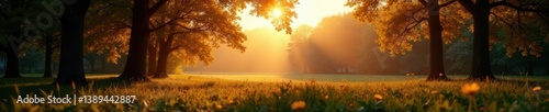 Panorama with sunlight peeking through the trees , nature, foliage