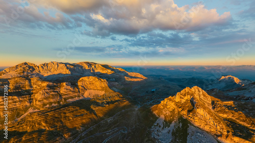 Panoramic aerial view of Bobotov Kuk mountains, Montenegro.