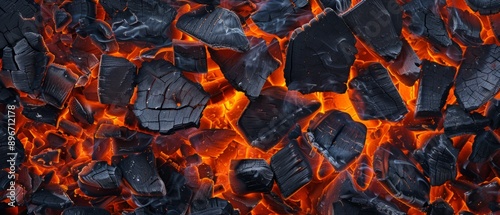 Panoramic close-up, high detail scan of ember fire texture, Generative AI