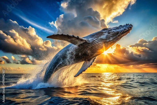 Panoramic Humpback Whale Tail Breach in Ocean - Majestic Wildlife Scene