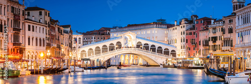 Panoramic of Rialto bridge at night, Venice