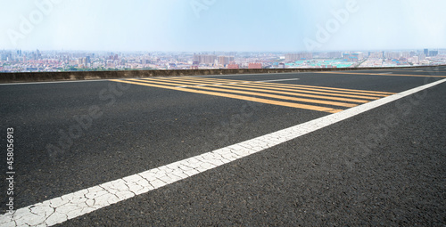 Panoramic skyline and empty asphalt road with modern buildings