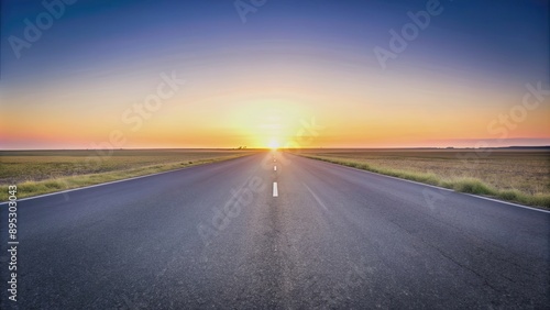 Panoramic view of asphalt road in steppe landscape at sunset, sunset, steppe, road, panoramic view, asphalt, landscape