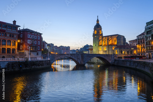 panoramic view of bilbao old town with san Anton church at background, Spain
