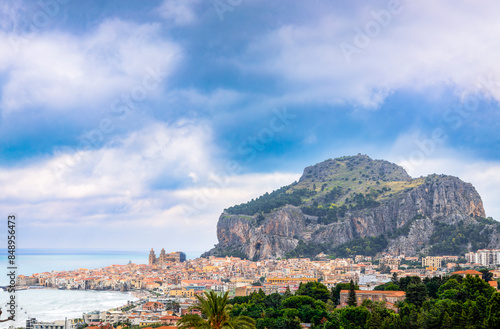 Panoramic view of Cefalù, province of Palermo, Sicily, Italy