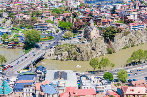 Panoramic view of Tbilisi city from Narikala fortress, old town and modern architecture. Georgia
