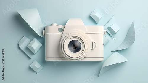 paper cut art of a a vintage camera with light pattern, empty space in the center,generative ai illustration