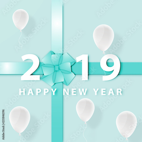 Paper art of Merry Christmas and Happy New Year Festival with Blue Gift box top view background vector
