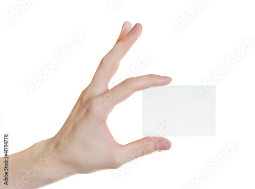 Paper card in man hand isolated
