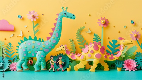 Paper cut illustration of a family visiting the Singapore Zoo with detailed animal enclosures and happy visitors showcasing family-friendly activities Stock Photo with copy space