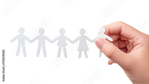 Paper Cutout People Chain with Hand Adding a Figure: Inclusion Concept