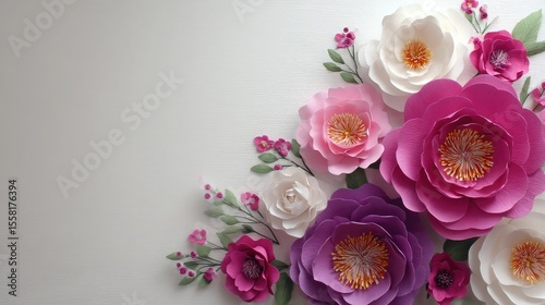 Paper Flower Bloom Elegant Floral Arrangement on White Background.