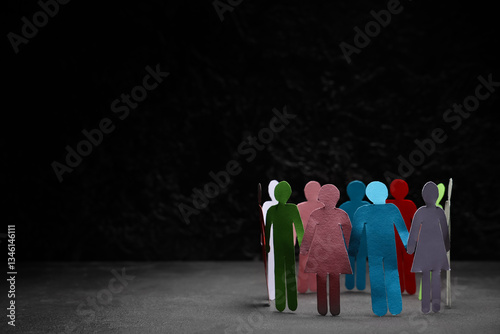 Paper human figures making circle on dark table. Diversity and inclusion concept