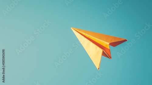 Paper plane flying against light blue sky background, symbolizing achievement with copy space.