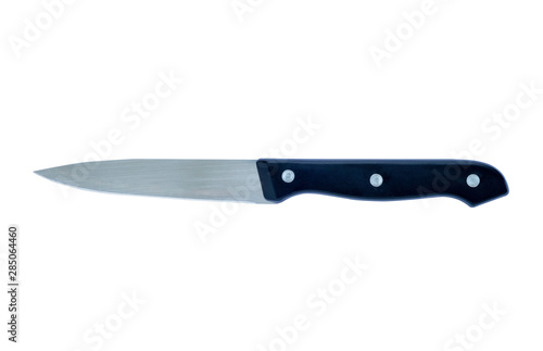 Paring knife, Stainless steel with plastic black handle isolated on white background. with clipping path.