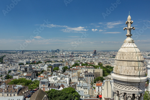 PARIS, FRANCE - JUNE 23, 2016: Aerial view from Basilica of the Sacred Heart of Jesus stands at the summit of the butte Montmartre - highest point in the Paris