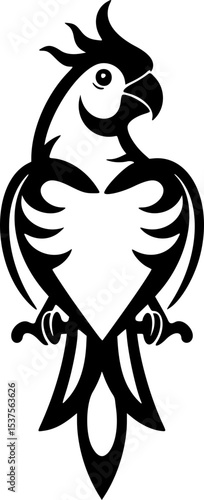 Parrot Portrait Vector. Black and White Monochrome Silhouette. Tropical Bird Macaw Tattoo Design. Animal Illustration