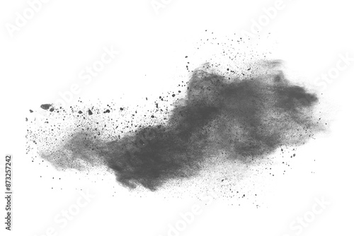 particles of charcoal on white background,abstract powder splatted on white background,Freeze motion of black powder exploding or throwing black powder.