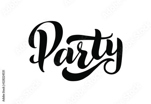 Party hand drawn lettering text. Beautiful greeting calligraphy, black text. Hand drawn for invitation print design, card, banner. Vector modern lettering isolated on white background