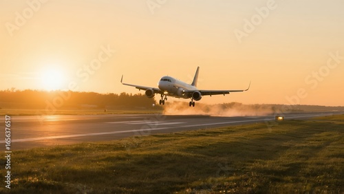 Passenger Commercial Airplane Taking Off During Sunset on Runway