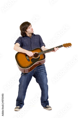 passionate guitarist playing his acoustic guitar