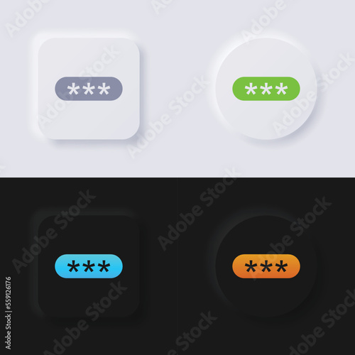 Password asterisk field box symbol button icon set, Multicolor neumorphism button soft UI Design for Web design, Application UI and more, Button, Vector.