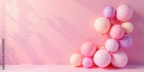 Pastel Balloons Adorning a Soft Pink Wall with Gentle Light and Shadow