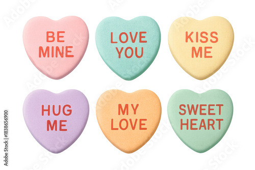 Pastel candy hearts expressing love messages for valentine's day