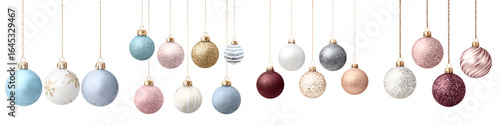 Pastel Christmas Ornaments Hanging on White Background