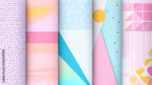 Pastel color patterns, geometric shapes, polka dots, stripes, and gradients.