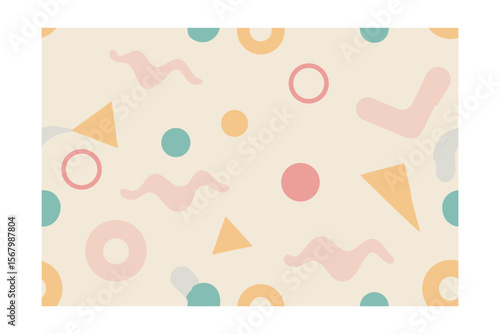 Pastel colored abstract shapes on a beige geometric seamless pattern design vector