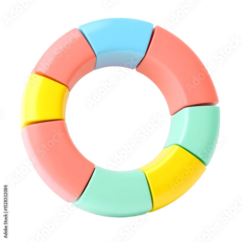 Pastel colored circular puzzle pieces isolated on transparent background