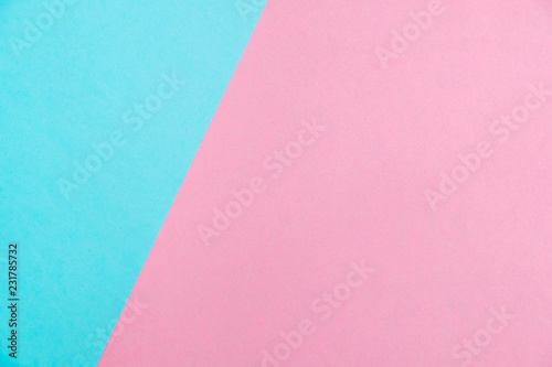 Pastel colored paper flat lay top view, background texture, pink and blue.