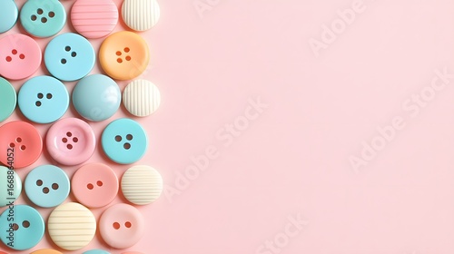 Pastel Colorful Buttons on Pink Background Flatlay