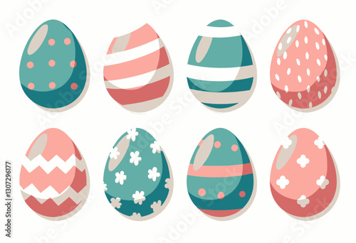 Pastel Easter eggs with stripe, floral, polka dot designs