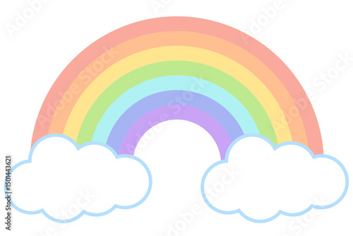 Pastel rainbow with clouds flat icon for posters and websites, Vector illustration