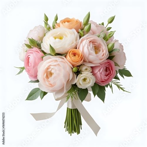 Pastel Ranunculus Bouquet with Soft Pink and Peach Blooms Isolated on White for Elegant Decor