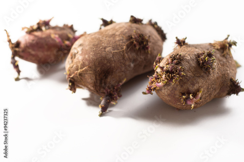patate germogliate su sfondo bianco