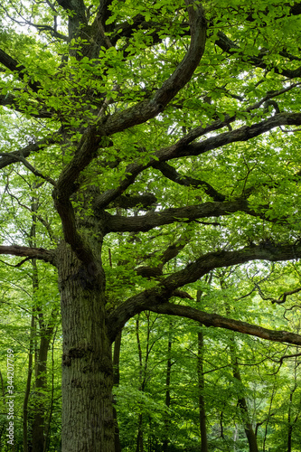 Path through Ruislip Woods, London Borough of Hillingdon, UK. Woods is an ancient woodland and is a Site of Special Scientific Interest.